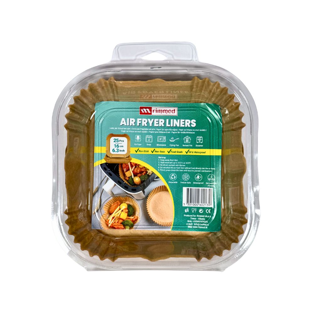 Air Fryer Liners Square 16 cm are designed for use in air fryers, helping keep the appliance clean and preventing food from sticking. The square shape and heat-resistant material make them ideal for practical and hygienic cooking in both home and professional use.